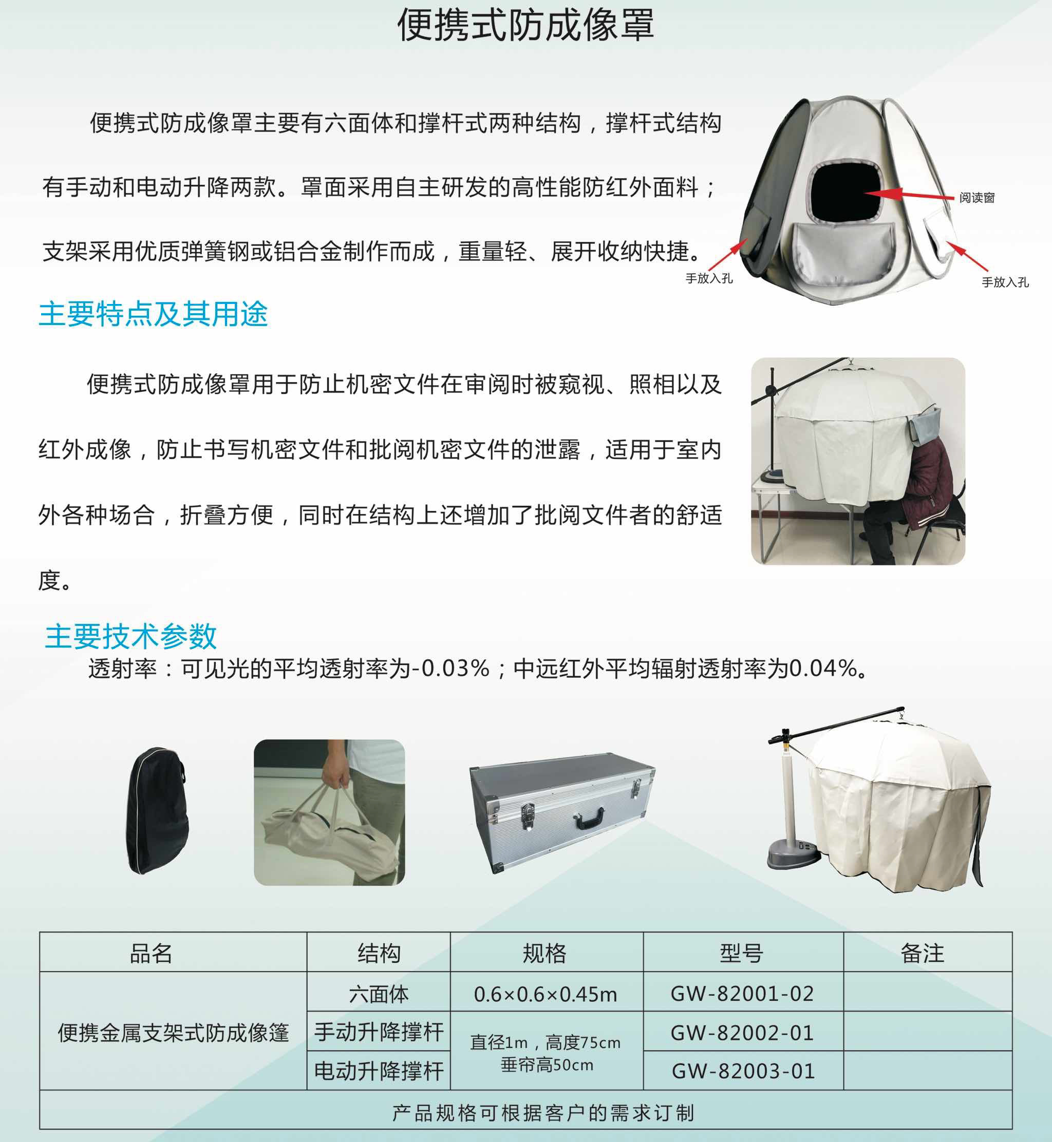 桌上型防成像罩 手動升降桿