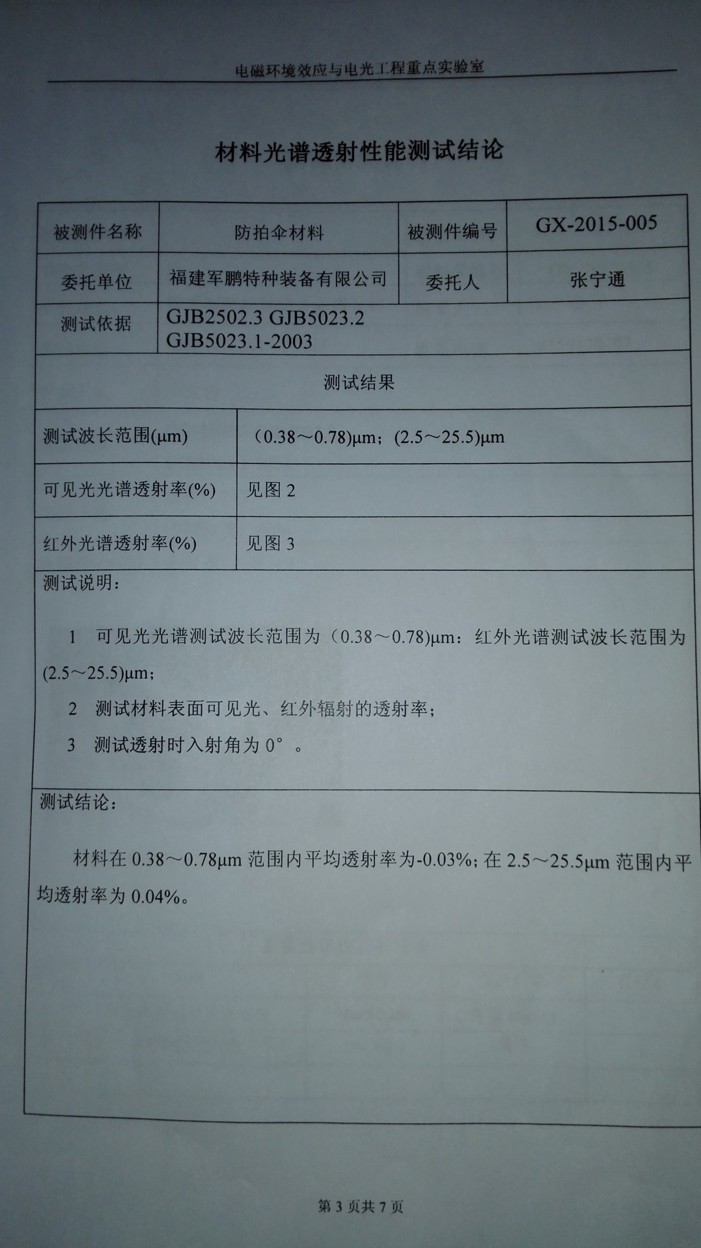 2、可見光在0.38um~0.78um測試波長范圍內平均透視率為-0.03%;紅外光譜在2.5um~25.5um測試波長范圍內平均透視率為0.04%。